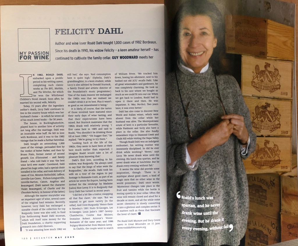 Decanter, May 2005, (interview with Felicity Dahl about Dahl’s wine collection)